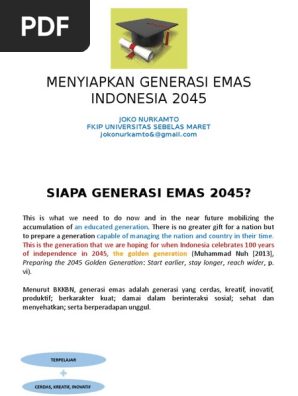 Generasi Emas Indonesia 2045 Paska Negara Telah Mencapai Target Di Semua Tingkat Pendidikan Salah Pdf Document