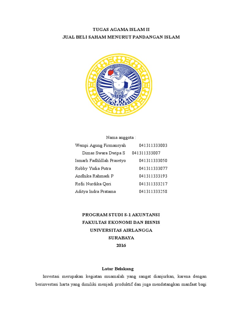 6 Jan 2022 — Hukum Jual-Beli Saham dalam Islam Adalah Boleh ... Persyaratan yang pertama adalah bahwa saham yang diperjualbelikan haruslah mempunyai underlying ... Hal ini karena masalah jual beli saham adalah bagian dari penerapan Tujuan Ekonomi Islam Kepada Masyarakat Islam, Hukum Ekonomi Dalam Islam, dan juga Hukum Ekonomi Syariah. Salah seorang Ekonom Islam asal Arab Saudi, yaitu Khalid Abdul rahmad Ahmad, bahwa saham yang dilakukan jual beli di bursa efek bukanlah hal yang dibenarkan oleh syariat islam.