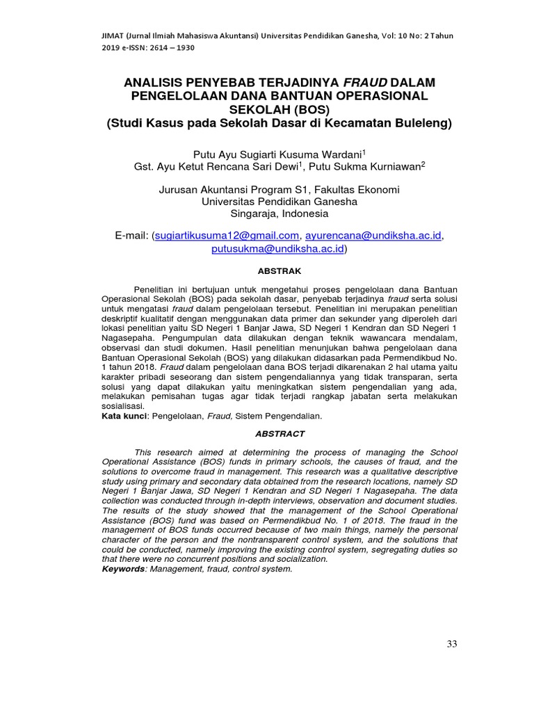 Judul skripsi akuntansi tentang dana bos. 76 tahun 2008 tentang pedoman akuntansi dan pelaporan keuangan badan layanan umum di pusat bisnis uin sunan ampel surabaya. Analisis pengelolaan dana operasional sekolah bos di smpn 11 yogyakarta dan smpn 1 purworejo abstrak skripsi ini membahas pengelolaan dana bantuan operasional sekolah bos dan ...