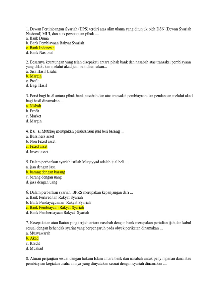 b. Prinsip Syariah c. Legalitas d. Prinsip Islam 9. Pembagian keuntungan dari bank syariah kepada nasabah dilakukan berdasarkan nisbah yang telah disepakati. Bagi hasil yang didapat juga tergantung pada besarnya jumlah, jangka waktu simpanan dan pendapatan bank. Kedua Aturan hukum prinsip bagi hasil dalam bank syariah masih digunakan hingga saat ini. Sehingga bisa dijadikan acuan, baik oleh pihak perbankan, penerima modal darinya, dan juga nasabah sebagai penanam modal. Dalam kegiatan mudharabah atau bagi hasil sendiri banyak ketentuannya yang akan dibahas berikut. Prinsip Mudharabah dalam Bank Syariah Menghimpun dana dari masyarakat dalam bentuk simpanan berupa deposito berjangka, tabungan, dan/atau bentuk lainnya yang dipersamakan dengan itu. Memberikan kredit. Menyediakan pembiayaan bagi nasabah berdasarkan prinsip suku bunga/bagi hasil sesuai dengan ketentuan yang ditetapkan dalam Peraturan Pemerintah. 5. Pembiayaan barang modal berdasarkan prinsip sewa murni tanpa pilihan (ijarah), atau dengan adanya pilihan pemindahan kepemilikan atas barang yang disewa dari pihak bank oleh pihak lain (ijarah wa iqtina). Prinsip syariah atau akad yang digunakan pada penelitian ini adalah musyarakah. Prinsip penyertaan modal atau