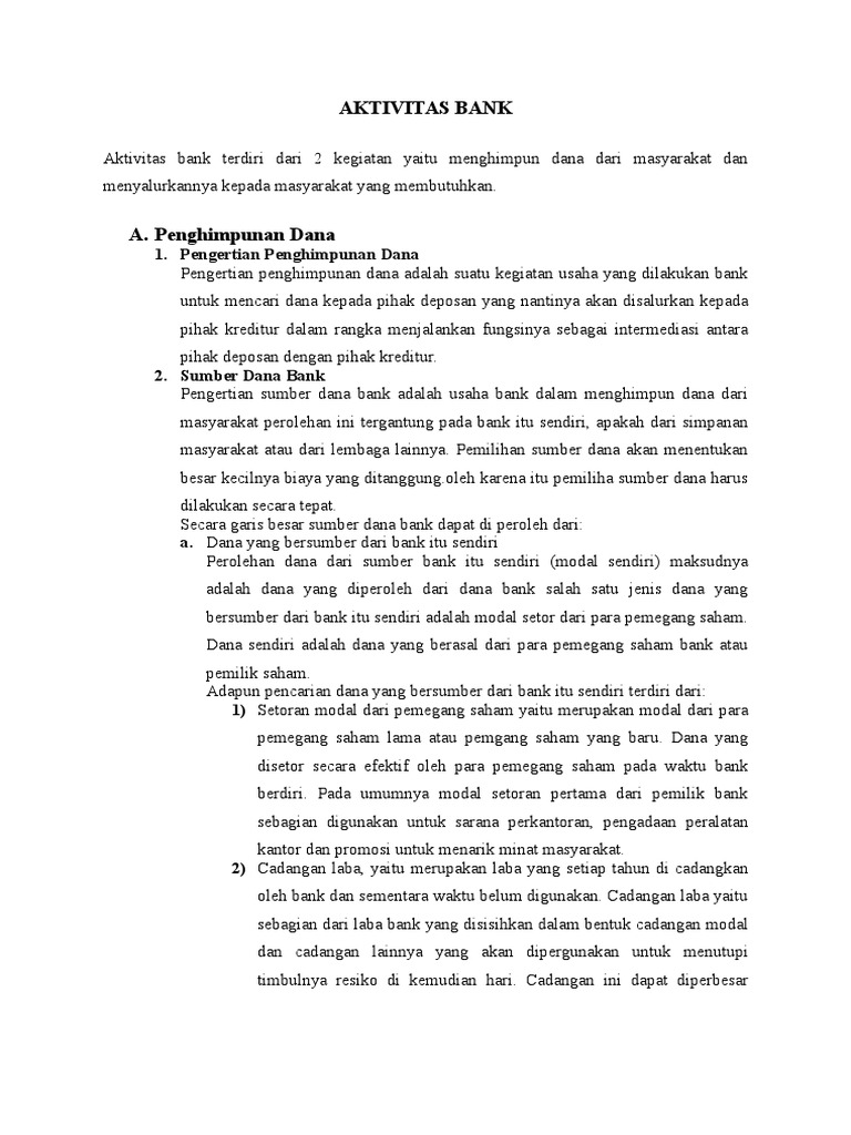 Menjelaskan kegiatan bank dalam menghimpun dana, menyalurkan dana dan memberikan jasa-jasa lainnya 3.7. ... dipercayakan oleh masyarakat kepada Bank berdasarkan perjanjian penyimpanan dana dalam ...