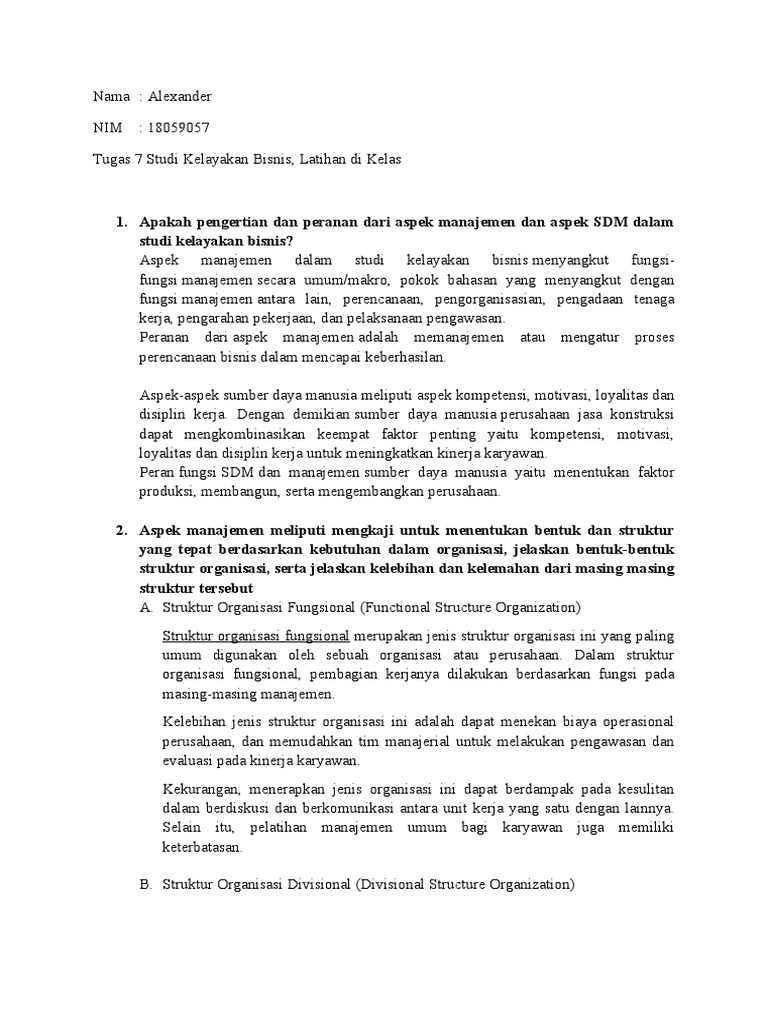 Pokok-Pokok dari Aspek Manajemen. 1. Perencanaan (Planning) Dalam seluruh aktivitas memanajemen studi kelayakan bisnis, perlu adanya planning terlebih dahulu. Fungsi dari perencanaan itu sendiri adalah untuk menjalankan pokok-pokok selanjutnya seperti, pengorganisasian, pelaksanaan, pengendalian, dan sebagainya. Studi kelayakan bisnis yang dilakukan secara mendalam bahkan dapat membantu Anda menjalankan elemen penting usaha seperti pemasaran. Sebab, studi ini memberikan gambaran situasi bisnis yang akan Anda hadapi nanti. 5 Aspek Penting dalam Studi Kelayakan Bisnis. Dalam melakukan studi kelayakan bisnis, ada beberapa aspek yang bisa dijadikan ... Aspek-aspek Studi Kelayakan Bisnis Desain sudut pandang studi kelayakan bisnis merupakan salah satu faktor pendukung sangat penting dalam pendirian suatu usaha. Karena dengan mendesain bagian-bagian dalam suatu usaha, kita dapat menbagu n tugas dan tanggung jawab masing-masing pekerja serta kita juga dapat mempersiapkan cara-cara pelayanan yang ... The aspect of proper marketing, with high quality products, because of imported raw materials, affordable prices, so that all circles of society can ensure, wide enough distribution, and promotions...